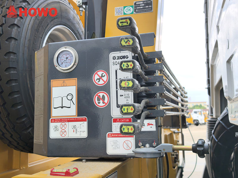 The vehicle chassis is sturdy and durable, and the crane utilizes the XCMG SQ4SK2Q material, which offers excellent bending resistance and stability. Both the dump system and the hoisting system are equipped with overload protection and limiters to ensure safe and reliable operation. The stable outrigger structure effectively improves balance during operation, ensuring smooth loading and unloading.
