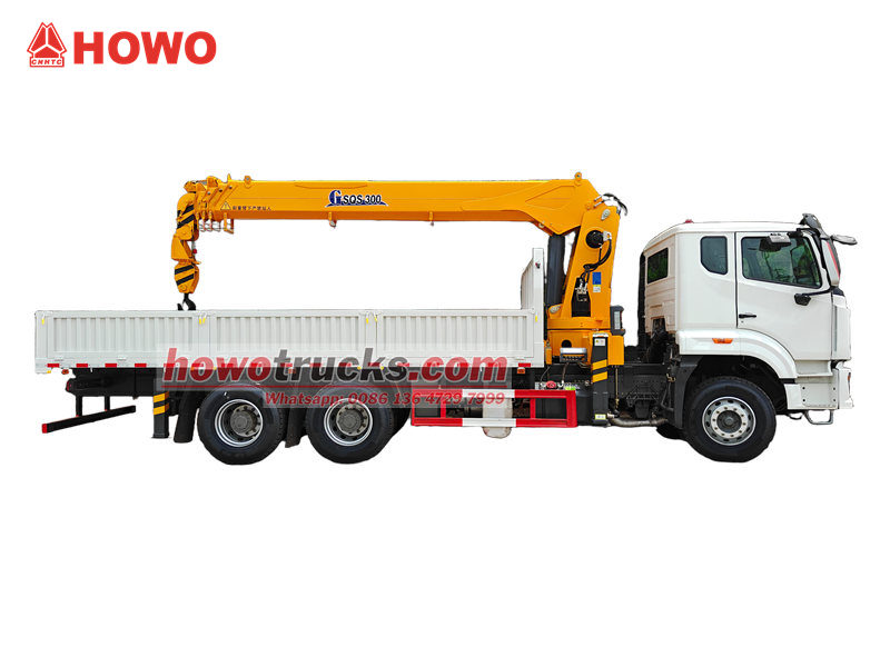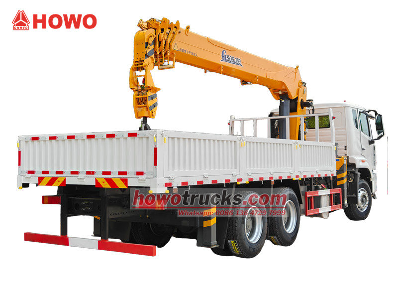 The HOWO service truck with a 20tons crane is a specialized vehicle that combines transport and lifting functions. Its telescopic boom features a large operating radius and strong lifting capacity, making it suitable for a variety of applications, including construction sites, logistics, and municipal engineering.
