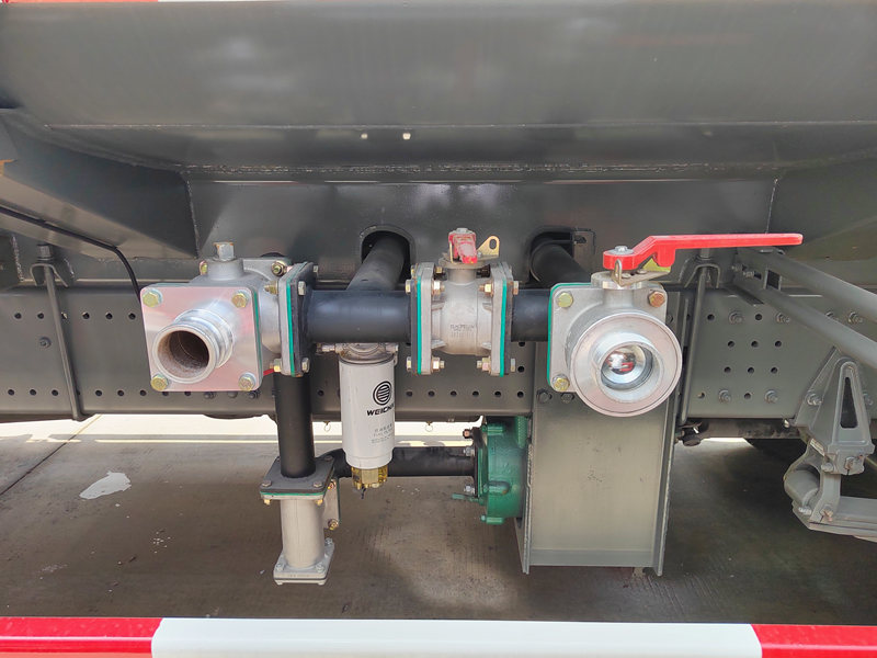 A forward nozzle is located at the lower front of the vehicle, spraying water in a fan-shaped pattern to effectively wash away dust and sediment from the road surface. A rear spray system is installed at the rear of the vehicle, evenly distributing water across the road surface to reduce dust and maintain moisture. Sprinklers on both sides irrigate roadside green belts, while high-position sprinklers are suitable for watering tall trees and plants.