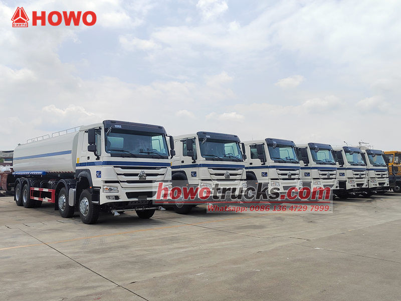 The Sinotruk HOWO 8x4 25,000-liter water bowser truck is a specialized vehicle used for spraying water mist or washing roads, plazas, gardens, and construction sites. It primarily consists of a water tank, a sprinkler pump, a spraying system, and a control device. It can be used for a variety of applications, including dust suppression, cooling, landscaping, and emergency firefighting. The HOWO 8x4 water bowser truck is equipped with forward spray, rear spray, side spray, and a high-pressure water cannon, providing diverse spraying methods and wide coverage. The vehicle's self-priming and self-draining function facilitates water collection, making it suitable for a variety of operating environments, including urban sanitation, garden maintenance, and construction site dust control.     The HOWO 8x4 water bowser truck works as follows: The truck consists of a chassis, tank, water pump, power take-off (PTO), piping system, and spraying device. ●During operation, the engine, via the PTO, drives the water pump, which draws water from the tank and delivers it through pipes to the various spraying locations. ●A forward nozzle is located at the lower front of the vehicle, spraying water in a fan-shaped pattern to effectively wash away dust and sediment from the road surface. A rear spray system is installed at the rear of the vehicle, evenly distributing water across the road surface to reduce dust and maintain moisture. Sprinklers on both sides irrigate roadside green belts, while high-position sprinklers are suitable for watering tall trees and plants. ●The HOWO water bowser truck is equipped with a high-pressure water cannon with adjustable pressure and nozzle, enabling long-range cleaning and can also assist in firefighting in emergencies.     1. Reliable Structure and Flexible Capacity The HOWO 8x4 water tanker truck's tank body is constructed from high-quality carbon steel plates and features internal wave-breaking baffles, enhancing its strength while effectively reducing water sloshing, ensuring driving stability and safety. Tank capacity can be flexibly customized to meet customer needs, from small models with a capacity of 3 cbm to large vehicles with a capacity exceeding 40 cbm, meeting water requirements for various operations. The truck's durable chassis is suitable for both urban and rural roads, as well as complex operating environments.     2. Diverse Spraying Systems The HOWO 8x4 sprinkler truck is equipped with a variety of spraying devices, including front, rear, side, and high-position sprinklers, offering comprehensive functionality. The front nozzle, located at the lower front of the vehicle, sprays in a fan-shaped pattern, effectively washing away mud, sand, and dust from the road surface with high pressure. The rear sprinkler system evenly covers the road surface with water, achieving cooling and dust reduction effects. The side nozzles can water green belts on both sides of the road, while the high-position sprinkler is suitable for watering tall trees and plants. Equipped with a high-pressure water cannon with a long range and adjustable angle, it not only provides long-range washing but also assists in firefighting in emergencies.     3. Convenient Operation and Expanded Functionality The Sinotruk 8x4 water bowser truck features self-priming and self-draining functions, allowing it to quickly draw water from natural sources like ponds, ensuring flexible and efficient operation. Controls located inside and outside the cab allow the operator to easily switch spray modes at different locations. Optional features include a dust suppression sprayer, winter antifreeze system, and intelligent water volume monitoring to further expand its functionality. Its adaptability makes it an indispensable tool for diverse applications, from urban road cleaning to construction site dust control and landscaping maintenance.