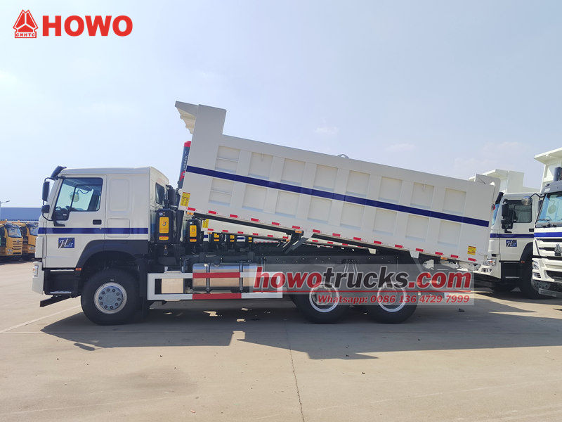 The Sinotruk HOWO 6x4 dumper truck is a specialized vehicle used in construction, mining, and infrastructure development. Its most notable feature is its hydraulically-operated automatic dumping system, significantly reducing labor and unloading time. This vehicle boasts a large load capacity, high hauling efficiency, and strong adaptability, making it a vital tool for transporting bulk materials such as sand, gravel, earth, and coal. With its sturdy structure and powerful performance, the Sinotruk HOWO 6x4 dumper truck is capable of handling complex road conditions and demanding working environments, making it a crucial piece of equipment for improving construction efficiency and reducing transportation costs.     The HOWO 6x4 dumper truck is modified on the basis of HOWO HW76 chassis, with a wheelbase of 3200+1400mm, equipped with 380hp WP10.380E22 diesel engine, HW19710 transmission,10-forward gear, 2-reverse gear, and a dump box made of carbon steel with Side thickness is 8 mm, Bottom thickness 10 mm, 5200x2300x1400mm, Front top lifting, stable lifting, clean and quick unloading, rear doors can be opened, and the vehicle is controlled by the control valve on the driver's side, which is easy to operate.     1. Structural Design and Load Capacity The HOWO 6x4 dumper truck consists of a HOWO 6x4 chassis, a cargo box, and a hydraulic lifting system. The box is constructed of high-strength steel, offering excellent wear and impact resistance. It can carry a variety of bulk materials, including sand, coal, and earth. Depending on its application, dump trucks are available in rear-dump, side-dump, and mining configurations, offering a variety of structural options to meet diverse transportation needs. Its strong load capacity and stable structural design ensure efficient operation even in harsh conditions.     2. Power Performance and Adaptability The HOWO mining dump truck is equipped with a high-power engine and reliable transmission system, offering strong power output, excellent gradeability, and off-road performance, making it suitable for complex road conditions such as mountainous terrain, muddy terrain, and gravel roads. The hydraulic system is highly responsive and offers high lifting efficiency, enabling quick unloading operations and significantly shortening cycle times.     3. Convenient Operation and Economic Benefits The Sinotruk HOWO 6x4 dumper truck is easy to operate. The driver can dump the cargo compartment using a simple control panel, reducing manual effort and improving transport and unloading efficiency. Its high performance not only accelerates project progress but also reduces transportation time and labor costs, resulting in high economic benefits. With its sturdy structure, powerful engine, and efficient and convenient unloading method, the HOWO 6x4 dumper truck has become an indispensable piece of equipment in modern construction transportation.