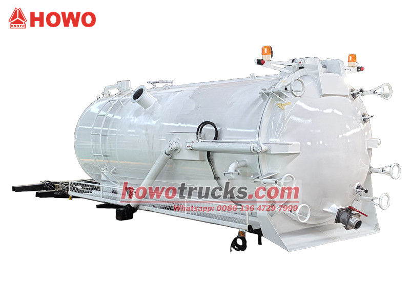 10 cbm drainage cleaning tanker body kits (also called 10,000 liters vacuum tanker truck superstructure, 10 cbm septic tank pump truck upper body, 10 cbm septic pump tanker upper body kit, vacuum suction truck superstructure, vacuum tank truck upper body, sewage disposal tanker upper body kits) It will be installed on the chassis and used to clean and collect liquids such as dirty water, sludge, septic tanks, crude oil, etc. It is suitable for cleaning the sewer, cesspit, cesspool, gully, etc.