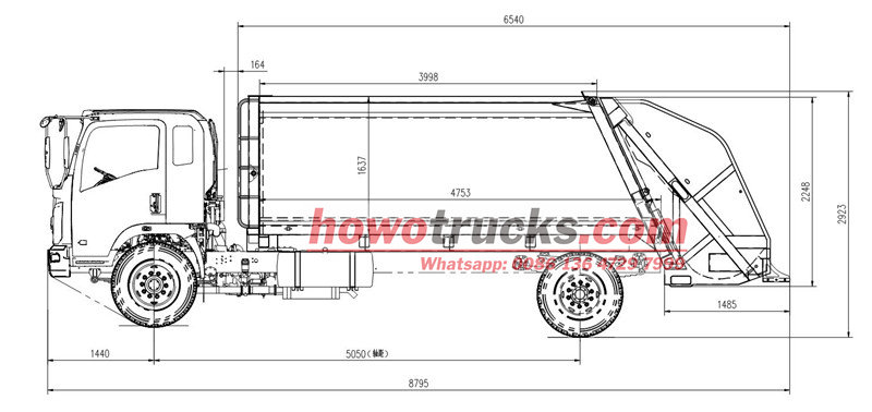 The rear loder compactor body uses a hydraulic locking device to achieve compression sealing, with excellent sealing effect; the lower part of the vehicle body is equipped with a specially structured water receiving trough. Through the double protection design, it can effectively prevent sewage dripping and avoid secondary pollution at the root.