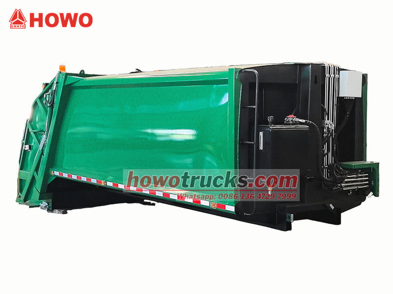 10cbm rear loder compactor body (also called rear loader compactor truck kit, 10m³ trash compactor truck upper body kit, garbage compactor truck superstructure, 10cbm rear loader garbage truck superstructure, waste compaction truck upper body) is a new type of sanitation specially used for collecting, transferring and removing garbage.