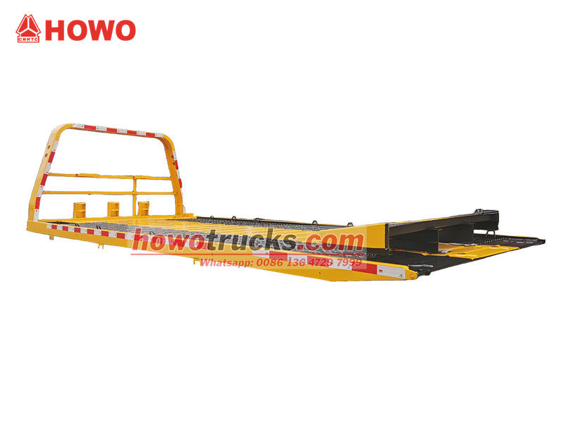 ●The supporting arm is welded from high-strength steel plates, providing a sturdy structure and strong load-bearing capacity. The flatbed features anti-slip grooves on its surface to ensure safety and stability during loading and transport.