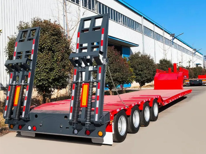 CS TRUCKS Four-Axle Lowbed Semi-Trailer is specifically designed for heavy-duty transportation. It features a main beam made of high-strength Q345B steel and a four-axle Fuwa axle configuration, with a rated load capacity of up to 80,000 kg and a loading height as low as 1,200 mm. Equipped with reinforced leaf spring suspension, a dual-circuit pneumatic braking system, and European-standard lighting, it ensures safe and efficient transportation of various engineering machinery and large equipment. Built for superior load-bearing and adaptability to complex working conditions.