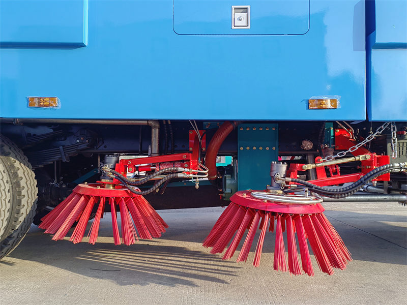 Total 4 pcs mechanical brushes with 4pcs water spray boom and 1 sucking discmounted in the middle, it is driven by the hyraulic motoispeed is adjustable, can be independently controlled,has automatic avoidance function |