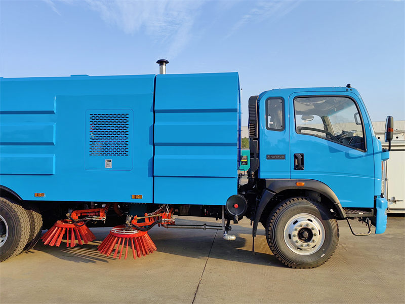 The Howo road sweeper is equipped with a spacious 4 CBM water tank to ensure continuous water supply to suppress dust during sweeping operations.