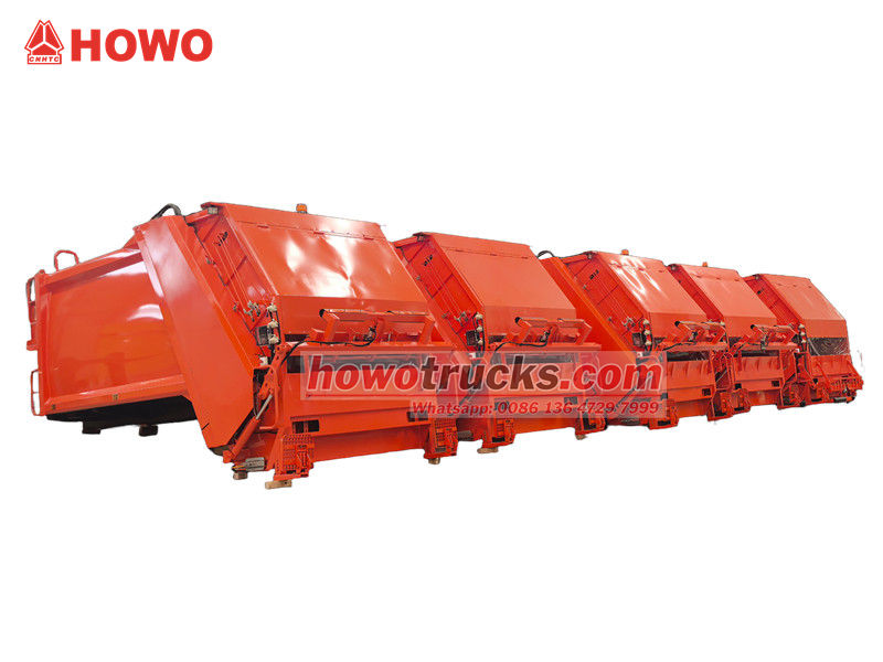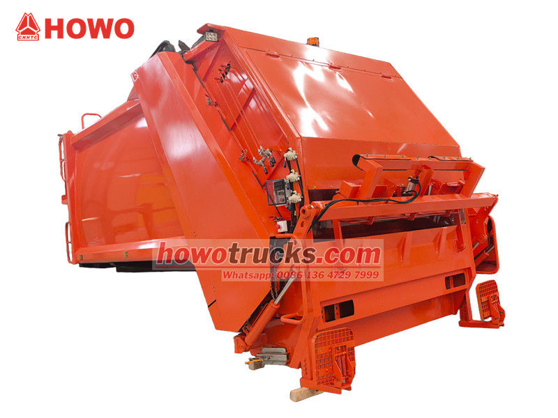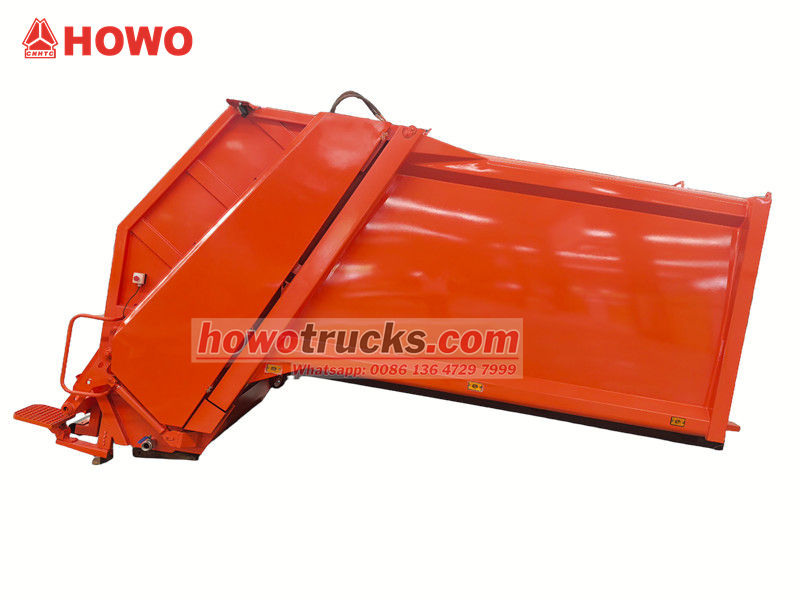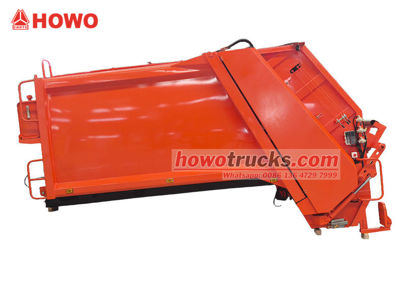 customized Howo 10 cbm rear loader superstructure (also called 10cbm rear loader garbage truck upper body kit, waste compaction truck superstructure, back loader garbage truck upper body, 10cbm garbage compactor truck upper body kit, 10cbm trash compactor truck superstructure, side load garbage truck superstructure) is a new type of sanitation specially used for collecting, transferring and removing garbage.