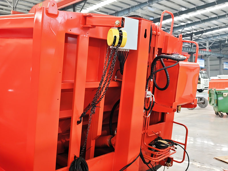 ●The upper body utilizes advanced hydraulic compression technology, using a multi-stage push mechanism to compress waste in layers, achieving a volume reduction ratio exceeding 3:1.