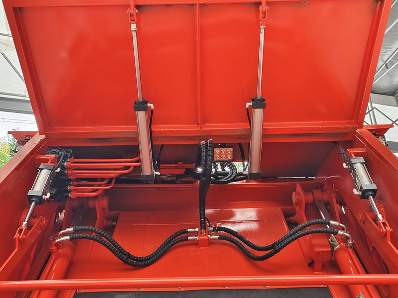 ●Compression hydraulic cylinders: Push the compression plate to reduce the volume of the waste.