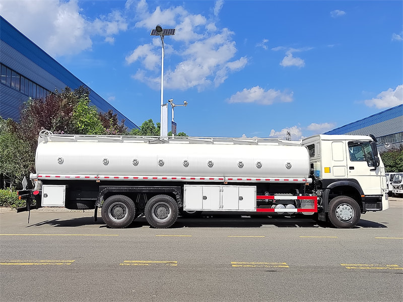 HOWO Diesel Transport Truck is a professional-grade tanker built on the HOWO 6×4 heavy-duty chassis, ensuring stability for heavy-load transportation. Equipped with an 18,000-liter carbon steel tank, the interior is treated with anti-corrosion coating and divided into nine independent compartments, enabling the simultaneous transport of multiple types of oil products. The upper-body is equipped with a 60m³/h high-flow fuel pump, a 4-inch unloading hose, an aluminum anti-slip walkway, and European-standard safety devices, providing efficient loading/unloading capabilities and a comprehensive safety protection system. It serves as a professional solution for the petrochemical transportation industry.