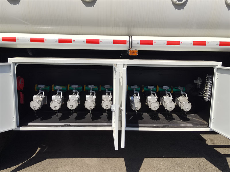Each compartment is equipped with an independent oil discharge port, and clear markings are provided at the connection points of the ports to enable easy identification and operation by loading/unloading personnel.