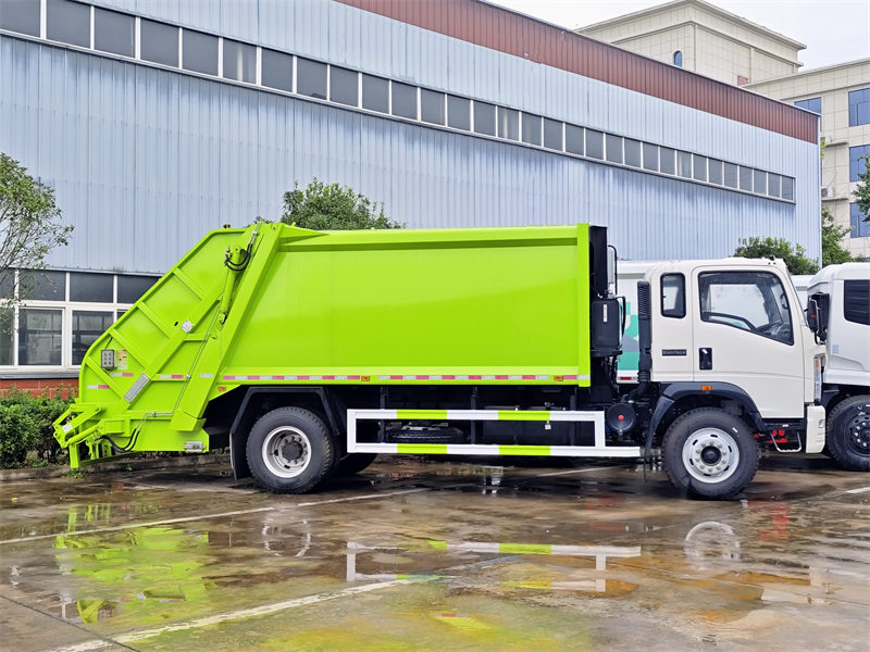 7000The Howo 10CBM garbage compactor truck is a high-efficiency equipment specifically designed for urban waste management. It employs advanced compactor technology to significantly reduce the volume of garbage, thereby enhancing transportation efficiency, decreasing the number of transport trips, and lowering operational costs. Built on the Howo 4x2 chassis, the garbage rear loader is equipped with a 160HP Euro 3 engine and a six-speed transmission, offering robust power performance and stable driving capabilities. With its compact design and easy operation, the Howo light 10CBM hydraulic garbage compactor is suitable for garbage collection and transportation in various environments, including cities and townships.