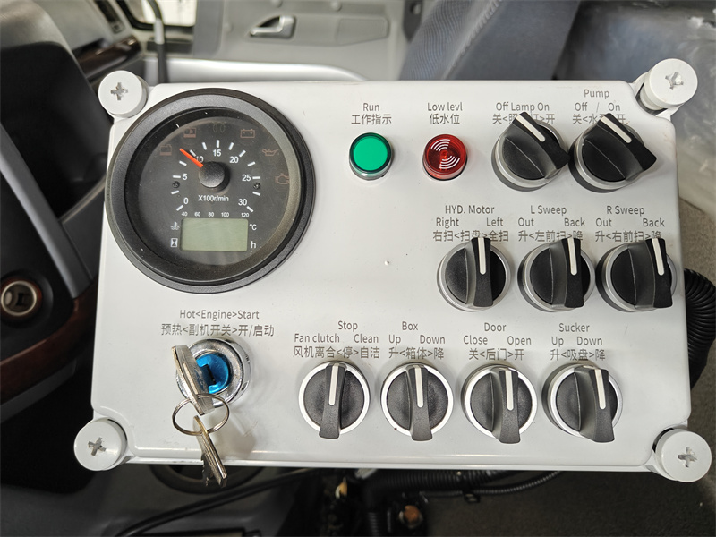 The intelligent electronic control system integrates dual operating boxes in the cab and near the suction cups, enabling one-touch control of functions such as brush raising and lowering, tank dumping, and blower start and stop, ensuring convenient and efficient operation. This vehicle utilizes a modular integrated design that integrates the power system, sweeping system, water system, and intelligent control system to achieve efficient, energy-saving, and environmentally friendly operations.
