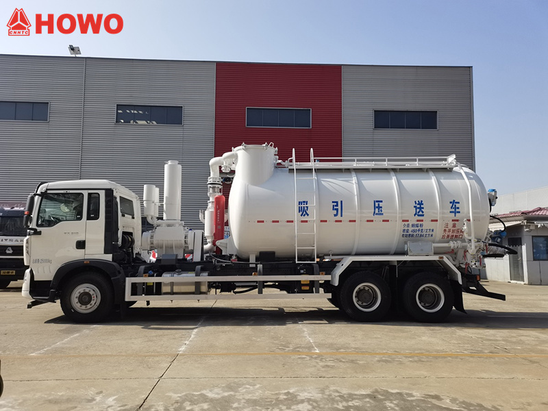 HOWO suction and pressure conveyor trucks have two main functions: negative pressure suction and positive pressure discharge.