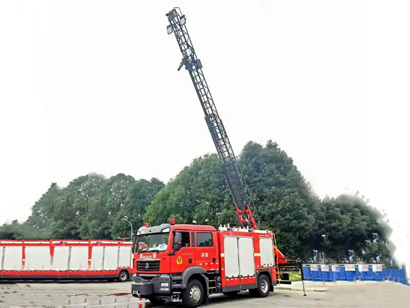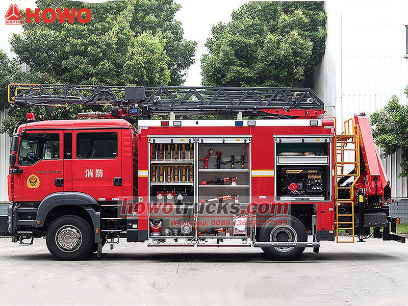 ---The Howo Fire Rescue can simultaneously perform high-altitude rescue, heavy object handling, and fire control;