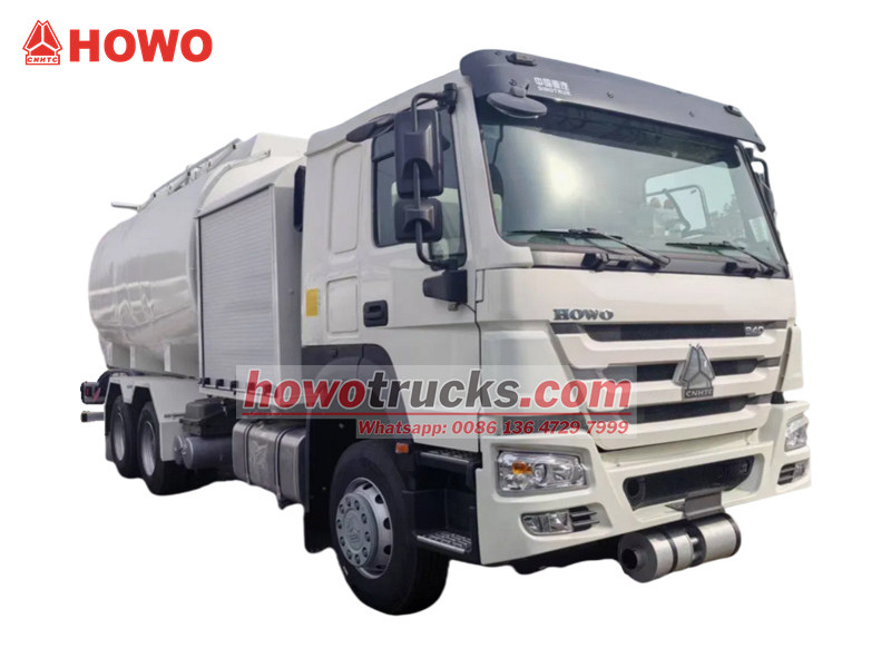 HOWO 20000L Aircraft Refueling Truck is a highly efficient and professional aviation ground support vehicle. Built on a robust HOWO 6×4 heavy-duty chassis and powered by a 400HP Weichai engine, it has strong and reliable performance. The upper structure features a 20-cubic-meter aluminum alloy fuel tank, equipped with a 1200-1500L/min self-priming centrifugal pump, a high-precision filtration system, and a dual-mode refueling system supporting both pressure refueling and gravity refueling. The intelligent control system, multi-layered safety protections, and explosion-proof design ensure safe and efficient aviation fuel delivery, meeting the stringent operational requirements of modern airports. It is an ideal choice for aviation fuel refueling operations.
