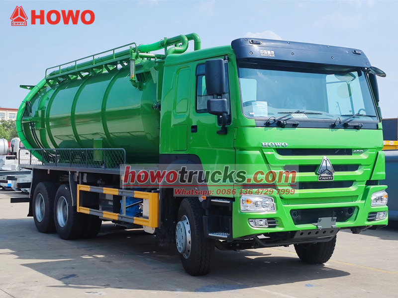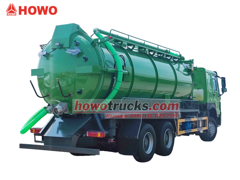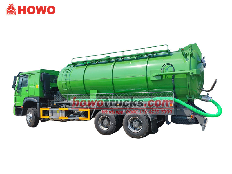 Jurop pump, 4×4, 6×6, RHD drive is optionalThe SINOTRUK HOWO sewer vacuum truck is a professional sanitation vehicle built on the HOWO 6x4 heavy-duty chassis, operating on the principle of vacuum negative pressure. It is primarily used for sucking and transporting liquid waste such as sludge and feces from sewers, septic tanks, and storm drains, effectively addressing pollution and cleaning challenges in urban underground pipelines and various types of ditches. Its core components include an efficient Italian MORO vacuum pump and a large-capacity sewage tank, offering long-distance suction capabilities and significant vertical suction depth.