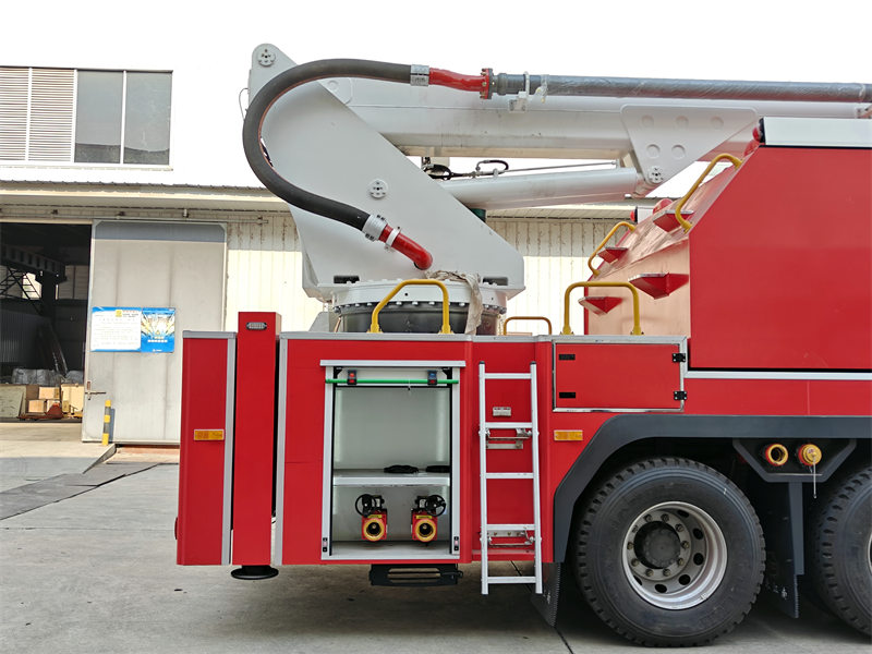 The slewing part is equipped with a central slewing joint that can achieve an infinite 360-degree slewing angle. The Howo fire truck with high reach extendable turret has the large-flow fire pump and fire cannon. The water tank and waterway are all made of high-quality stainless steel and high-strength aluminum alloy pipes. The hydraulic system adopts a high-performance pump and an electric-liquid proportional control mode. The electrical system adopts a mature and reliable controller CAN bus communication technology, and multi-point centralized operation.