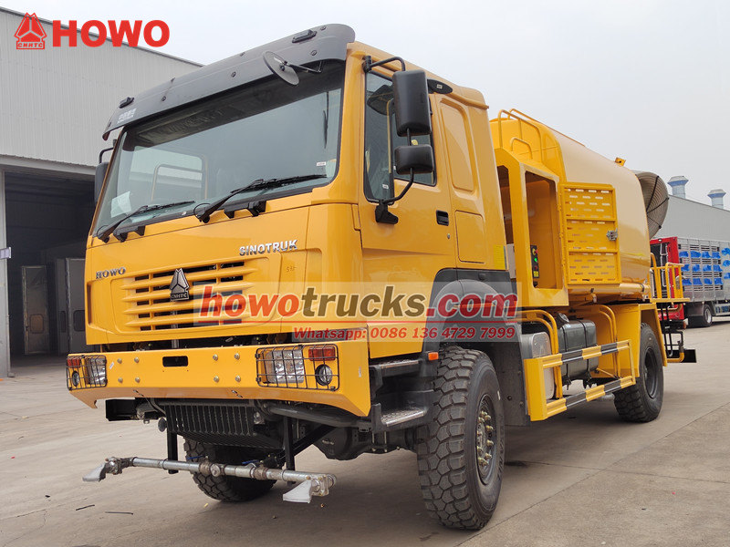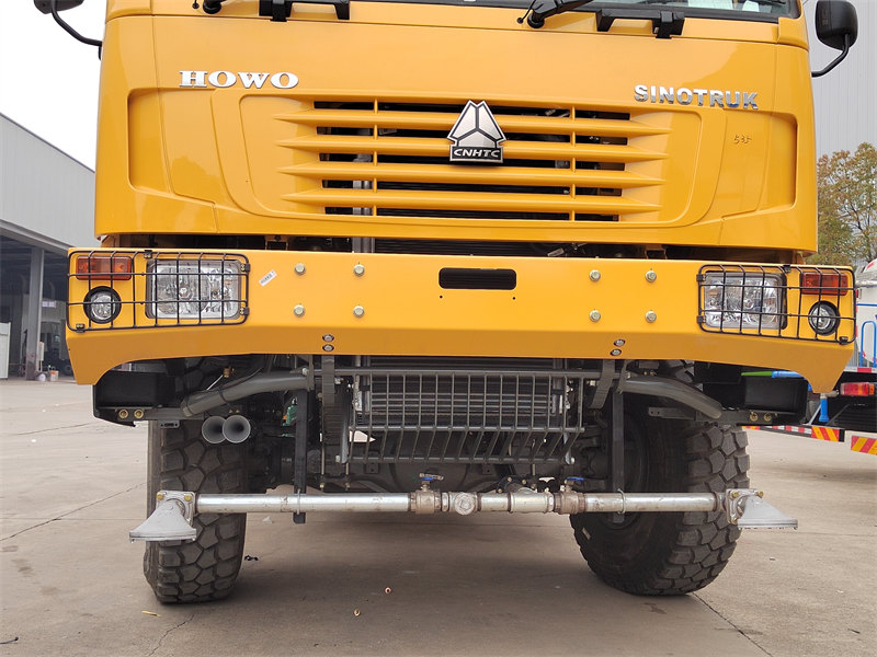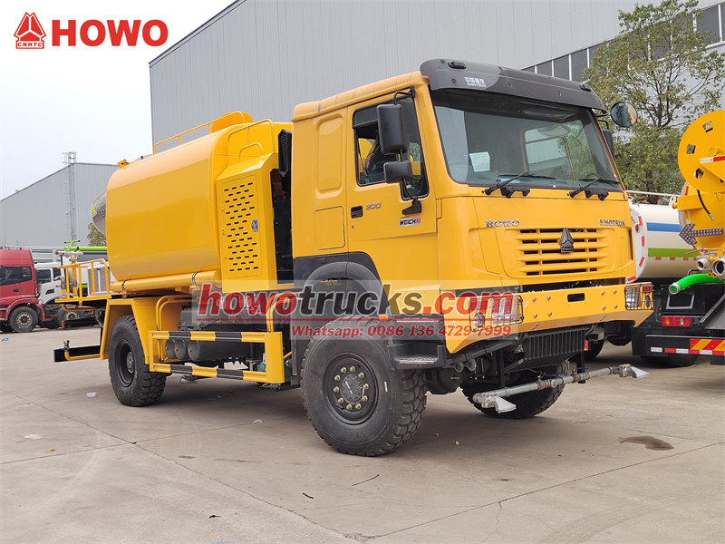 13000HOWO 4×4 water tanker truck is a high-performance, multi-functional dust suppression vehicle built on the robust HOWO 4×4 all-wheel-drive off-road chassis, with exceptional off-road capabilities. It is equipped with an STR cast front steering drive axle and an ST16 rear drive axle, along with a wide wheelbase design (2022/1830mm), ensuring excellent stability in complex terrains. The 4×4 drive system, paired with a 300-horsepower WD615.97C engine, delivers a massive torque of 1,340N·m, enabling it to easily handle extreme environments such as mountains and deserts.