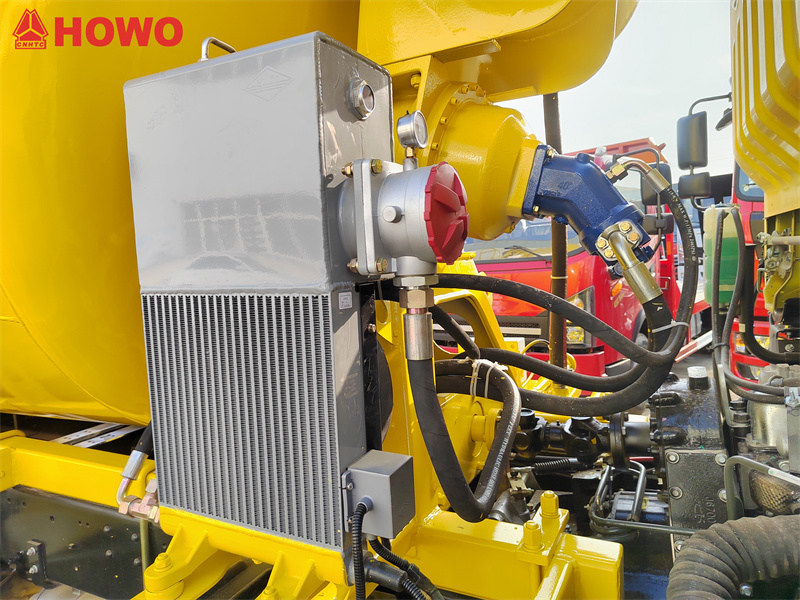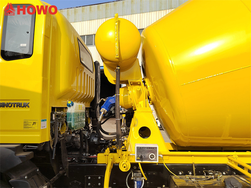 10000The HOWO 5 cbm transit mixer drum truck is an efficient and reliable medium-sized construction vehicle. Equipped with the proven Sinotruk MC05.18-40 engine and HW90510C, 10-speed transmission, it offers powerful power and excellent fuel efficiency. The 5-cubic-meter mixing tank, constructed from Q355 manganese steel, boasts excellent operational performance, with a loading rate of ≥3 m³/min, a discharge rate of ≥1.2 m³/min, and a low residual rate of ≤0.5%. The dual-side linkage control system at the rear ensures safe and convenient operation, allowing the operator to complete the entire process from either side of the vehicle.