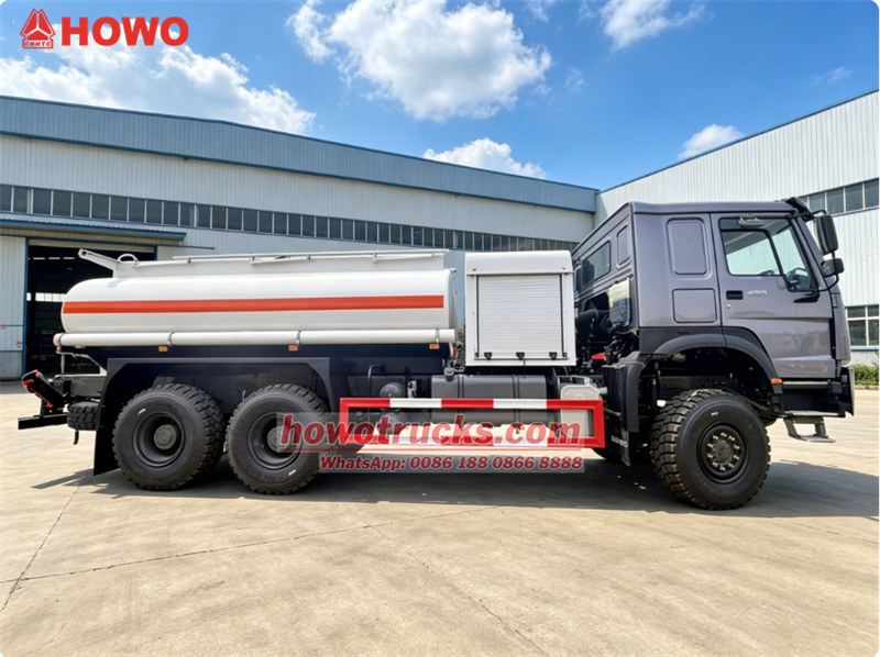13000*2The Howo 6x6 offroad 12cbm wildland fuel bowser truck is the city special refueling tank truck. The Howo fuel tanker equipped with a WD model 6 cylinder in-line water-cooled turbocharged intercooled diesel engine with a maximum output of 400HP. The gearbox is 10 front speeds and 2 rear speed, equipped with a reinforced diaphragm clutch. The Howo fuel tanker has strong power and good controllability, suitable for various road conditions oil transportation work.