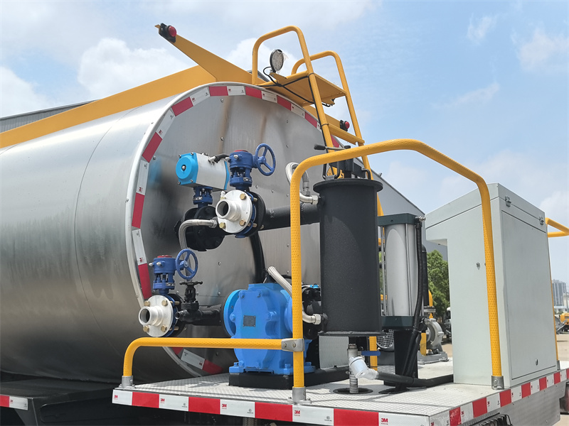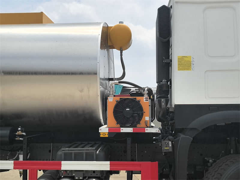 Equipped with an auxiliary generator set. This provides an independent, stable power source for the entire superstructure system (asphalt pump, burner, control system, etc.), ensuring that operation is unaffected by the chassis engine's operating conditions, saving energy and reducing chassis wear.