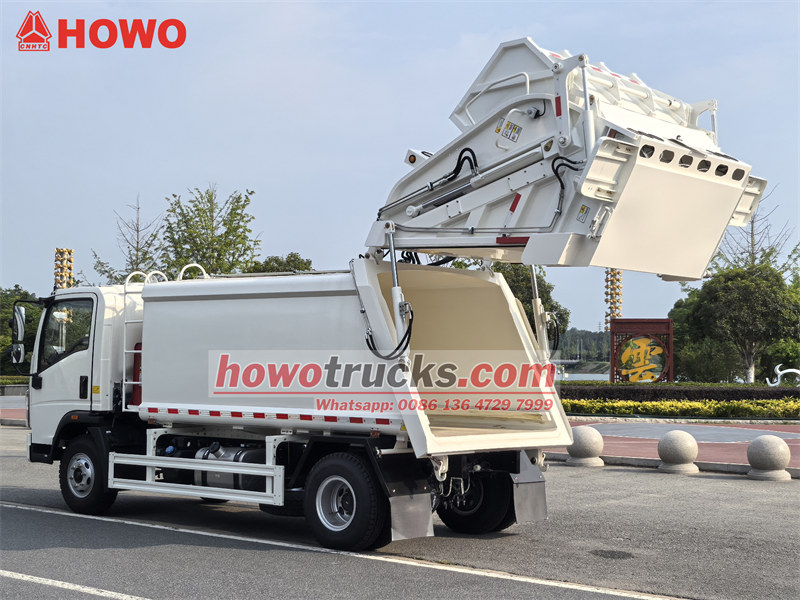 8000Sinotruk HOWO Garbage Compactor Truck is a professional garbage collection vehicle, which is designed and produced to collecting, compressing, storage, and transporting garbage. Also can be named as rear loader truck,refuse compactor truck, trash compactor truck. HOWO Dumpster Compactor Truck is designed and produced based on the HOWO 4x2 light duty truck chassis, equipped with 130HP WEICHAI EURO 5 diesel engine, suitable for Philippines market. Truck equipped with CAN BUS electric control box and Hydraulic control box, which can make truck operation more convenient, suitable for daily usage. Whole truck matched with powder coating process painting, which can make truck efficiently avoid rusty and extend life service.