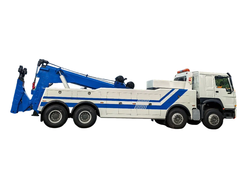 The HOWO 8×4 heavy-duty tow truck is a professional rescue vehicle integrated with towing and lifting capabilities. Built on the robust HOWO 8×4 heavy-duty chassis and powered by a Weichai 400-horsepower engine, it boasts a lifting capacity of 16,000 kg and dual 80 kN winches. This enables simultaneous lifting, supporting, and towing operations, making it highly effective in handling heavy-duty accident vehicles on highways and urban roads for rapid clearance.