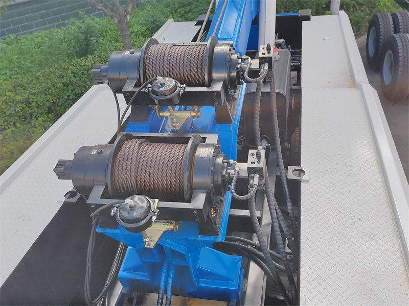 3. Winching Function: Heavy-duty tow trucks are equipped with two winches. These work in conjunction with the main boom and on-site anchor points (fixed pulleys) to perform various operations, such as righting overturned vehicles and winching vehicles that have rolled into deep ditches.