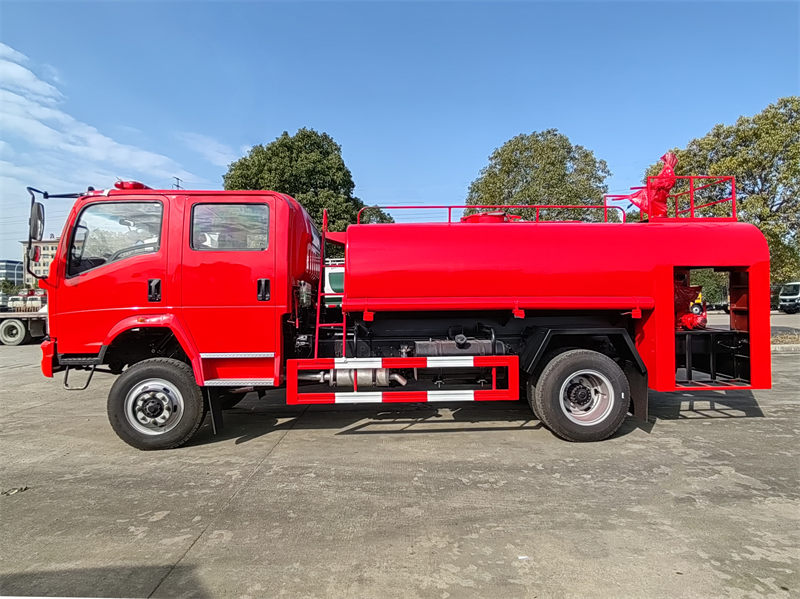 7500The HOWO 4X4 Rescue Fire water tanker is a professional firefighting vehicle designed to respond to emergency fire situations. It is equipped with the HOWO 4X4 chassis and can accommodate 3+3 passengers. Equipped with a ISF3.8S3154 engine, the output power reaches 154 horsepower, meeting the power needs of the HOWO 4X4 Rescue Fire fighting truck. The Howo fire adopts EURO Level 3 emission standards, and the emissions are clean and environmentally friendly. Equipped with 8.25R16 tires to ensure stable driving in emergency situations. In terms of fire protection performance, the Howo off-road Fire fighting truck has a water tank capacity of 6000 L. It is equipped with CB10/30 XZ fire pump and PS40 fire cannon, and can provide 36L/S@1.0MPa With a rated flow rate of 32L/S@2.0MPa and a range of more than 45 meters, it ensures effective fire extinguishing operations.