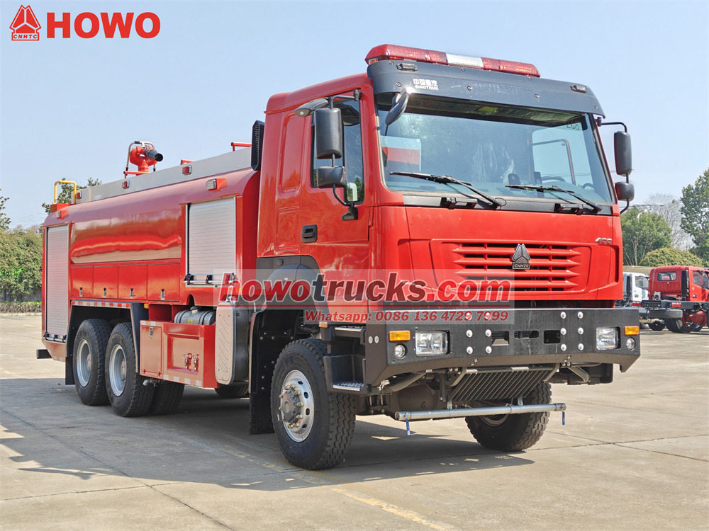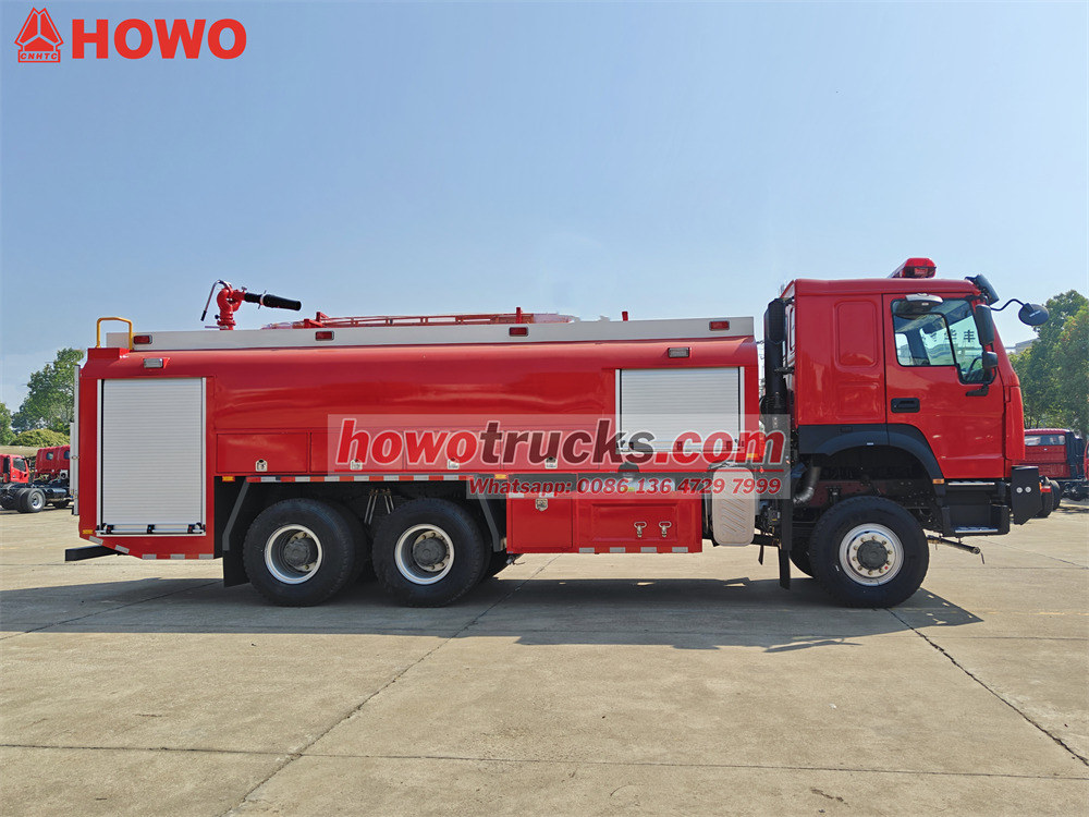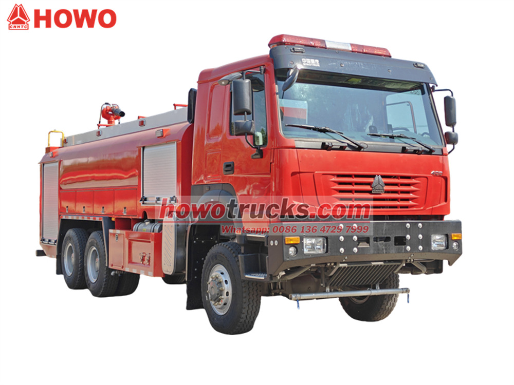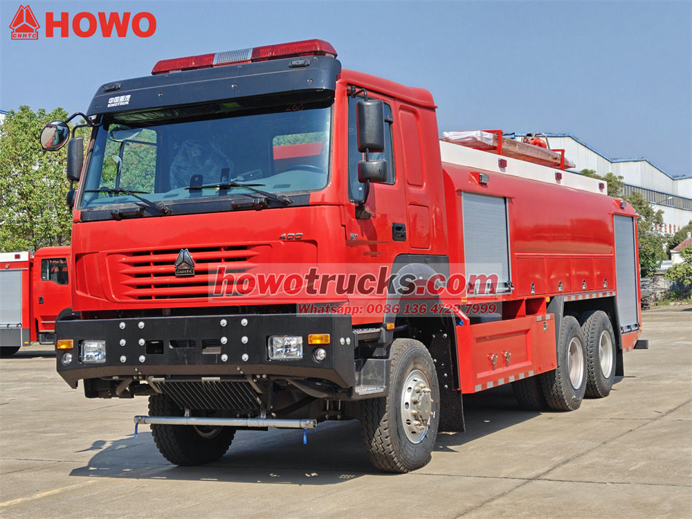 13000*2The Howo 6x6 fire tank truck is a perfect combination of powerful performance, exquisite craftsmanship and practical application advantages. This Howo fire fighting truck is equipped with Isuzu's powerful WP12S400 E201 engine, with an output of 400 horsepower and a 6x6 all-wheel drive system that is enough to cope with various emergencies. Its maximum speed can reach 95 km/h, ensuring that firefighters can reach the fire scene quickly.