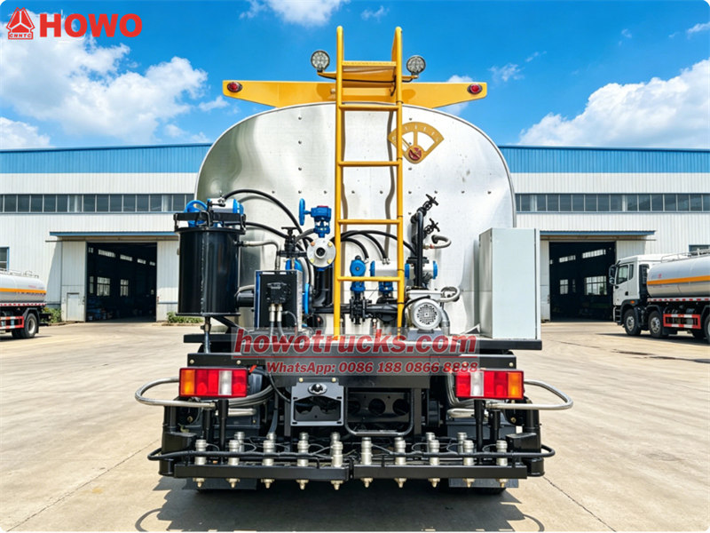 6000The core of the automatic bitumen distributor tanker truck is built on the proven HOWO light duty truck chassis. The solid combination of 2.5 tons on the front axle + 5 tons on the rear axle, with 7.50R16 tires (6 tires + 1 spare tire as standard), ensures stable driving and excellent passability on various paved roads. Equipped with China famous brand YC4E140-33 engine, its iconic low-speed and high-torque characteristics are the perfect partner for the Howo asphalt distributor truck's frequent starts and stops and stable and uniform speed driving during operations.
