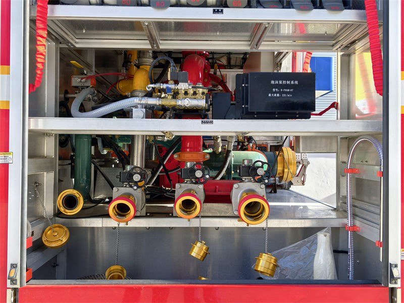 The water, foam concentrate, and compressed air undergo turbulence and mixing in the pipeline, ultimately reacting fully in the foam generator (such as a water gun) at the end of the fire hose, producing extremely fine and uniform compressed air foam.