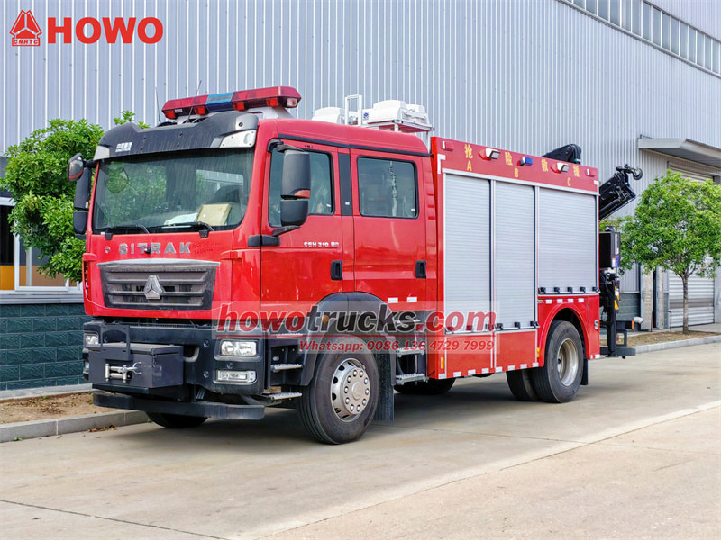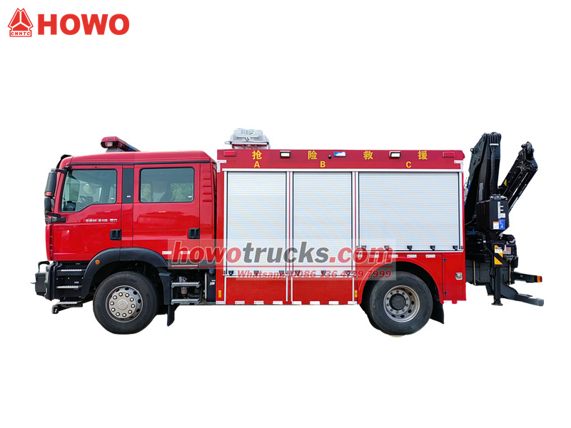 The Howo Fire Rescue can simultaneously emergency lighting, heavy object handling, and Firefighting tool storage.