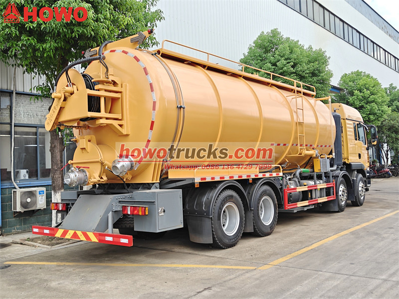 18000KG*2In the field of municipal sanitation, Howo 8x4 heavy cleaning vacuum sewage tank truck has become an industry benchmark with its excellent performance and multifunctional design. Equipped with a powerful Weichai series engine with a maximum horsepower of 350HP, combined with a high-pressure cleaning pump (pressure 16-19Mpa) and a sewage suction system, it can quickly dredge sewers, septic tanks and other complex scenes. The sewage tank volume is up to 20 cubic meters, with large capacity and extremely high efficiency in a single operation. It adopts a modular design and supports optional front reels, liquid level gauges and sprinklers to meet diverse needs.