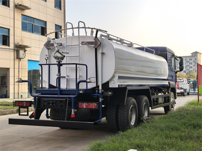 stainless steel tank, 6×6, RHD is optionalThe HOWO TX 18000L Water Sprinkler Truck is a high-capacity, multi-functional sanitation vehicle built on the HOWO TX heavy duty chassis, featuring a core water tank volume of 18,000 liters. It is powered by a Weichai 380-horsepower diesel engine and a 10-speed manual transmission, delivering robust performance and high load-bearing capacity. The tank is constructed with 5mm carbon steel and coated with an anti-corrosion layer, while its internal structure includes four compartments and anti-surge baffles to enhance driving stability. The vehicle integrates a Weilong centrifugal pump system, supporting self-priming drainage and operation with a flow rate of 60 m³/h. It also features a multi-mode spraying system, including front flushing, rear sprinkling, side spraying, and a high-pressure water cannon with a 28-meter range, making it suitable for diverse applications such as urban greening, dust suppression, cooling, and emergency firefighting.