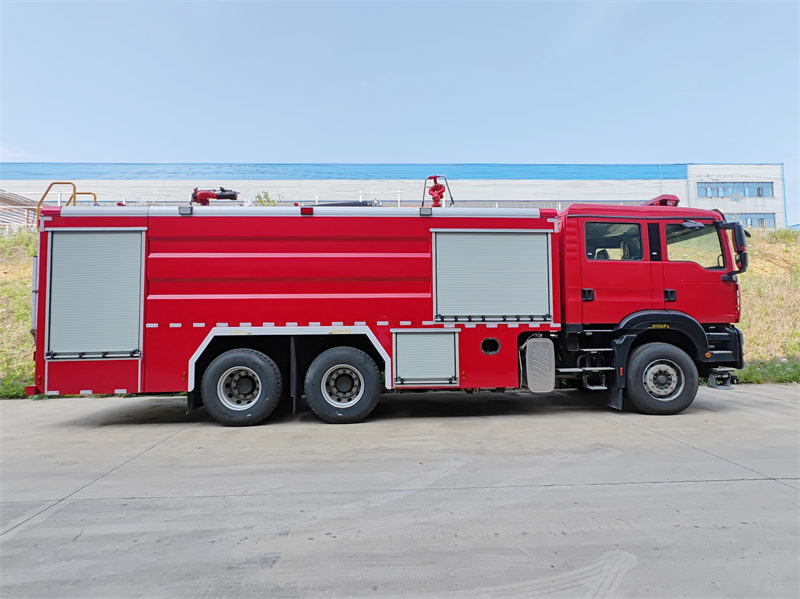 16000*2This is the dry powder fire truck built on Howo TX Chassis. It is equipped with a powerful Weichai 340HP engine with a displacement of 9.839L. It adopts a 6X4 drive mode and is equipped with a 10-speed gearbox. The maximum speed can reach 95km/h, which can adapt to various complex road conditions. In terms of the fire protection system, the vehicle is equipped with 700kg carbon steel dry powder storage tanks and 6units 80-liter nitrogen cylinders with a design pressure of 15MPa.