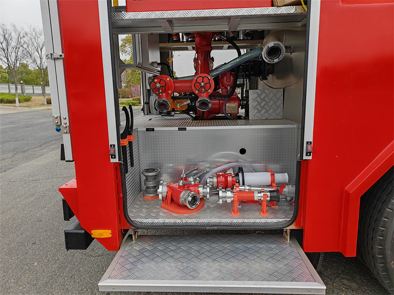 The fire pump is driven by PTO, with a pressure range of 1.6-2.5 MPa and a flow rate of 80-120 kg/s. The fire cannon has a spray speed of 60-100 kg/s and a range of 40-60 meters, which can effectively respond to various fire situations. The Howo fire truck is also equipped with a full set of standard fire rescue equipment, such as shovels, crowbars, axes and cutting equipment, and ladders and floodlights are optional.
