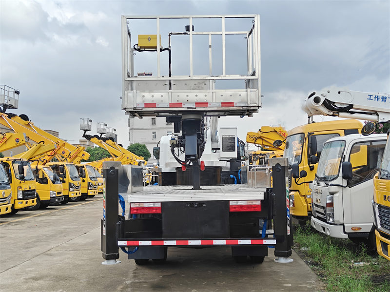 The HOWO 22m aerial platform truck is a specialized engineering truck that integrates superior technical performance and safety design. Built on the Howo all-drive chassis, the truck is equipped with an ISF3.8S3154 engine with a maximum output of 154 HP and a gross vehicle mass of 10,000 kg, providing flexible and powerful handling. The Howo light-duty aerial platform truck has a maximum working height of 22 meters and a maximum operating radius of 12 meters. It utilizes a hydraulic static balancing system to ensure stability. Its unique H-shaped hydraulic outrigger design with a bidirectional hydraulic locking mechanism ensures stability during operation. The Howo light manlift truck also features dual manual and wireless remote control systems. The platform has a rated load capacity of 200 kg, 360° hydraulic rotation, and multiple built-in safety features, including automatic out-of-bounds control, an emergency stop, and a leakage protection device.