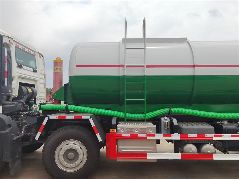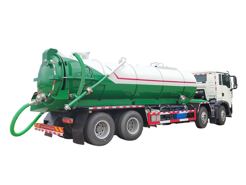 17500HOWO TX 25000L vacuum tank truck is a specialized sanitation vehicle designed for efficient suction, transport, and disposal of liquid waste and sludge. Built on a HOWO TX 8×4 heavy-duty chassis, it is powered by a 350-horsepower engine and an HW19710 10-speed transmission, supported by a large 400L fuel tank. The superstructure includes a 25-cubic-meter vacuum tank made of 6mm high-quality carbon steel, integrated with an SK-20 water-ring vacuum pump capable of achieving a maximum suction rate of 20m³/min and an ultimate vacuum level of 8300Pa, ensuring powerful suction and corrosion resistance.