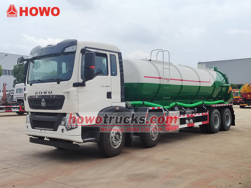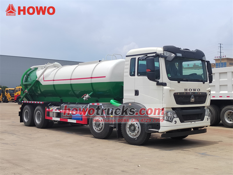 HOWO TX 25000L sewer vacuum truck is a professional sanitation vehicle built on the HOWO 8×4 chassis, equipped with a 350-horsepower engine and a large-capacity carbon steel vacuum tank. It features an efficient water-ring vacuum pump with high suction speed and strong vacuum pressure, enabling rapid cleanup of sludge and sewage from deep sources such as septic tanks and sewer lines. With hydraulic self-unloading and rear cover opening functions, it ensures efficient and reliable operation, making it an ideal choice for municipal and industrial cleaning applications.